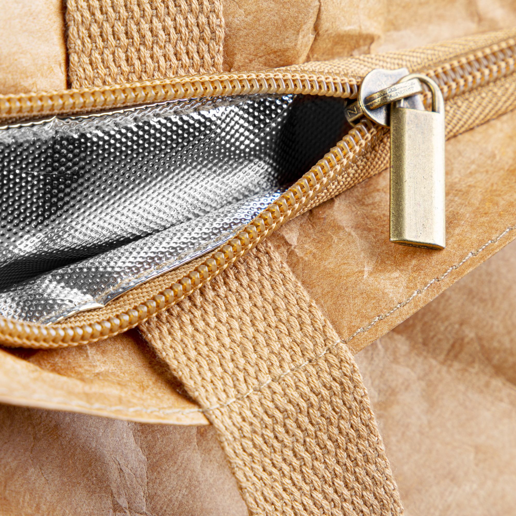 VALENCIA má velkou vnitřní kapsu na zip, kterou oceníte během pikniků nebo během nákupu. Vnitřní část tašky je doplněna o hliníkovou fólii, která zajišťuje tepelnou izolaci, díky čemuž přenášené potraviny udržíte čerstvé a v chladu.